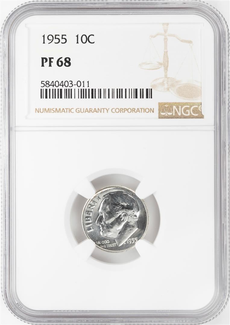 One 1955 Proof Roosevelt Dime Coin NGC PF68. NGC Certified.
