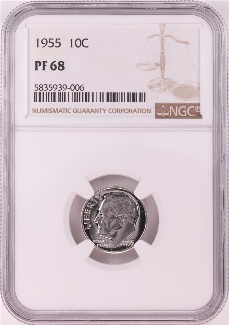 One 1955 Proof Roosevelt Dime Coin NGC PF68. NGC Certified.