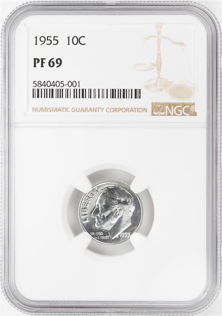One 1955 Proof Roosevelt Dime Coin NGC PF69. NGC Certified.