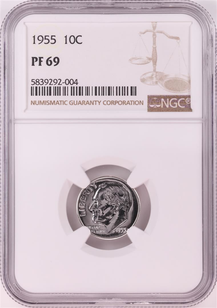 One 1955 Proof Roosevelt Dime Coin NGC PF69. NGC Certified.