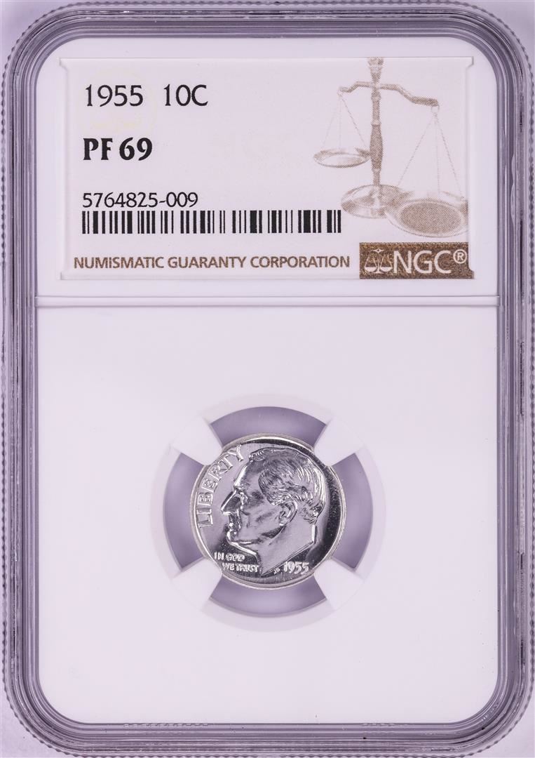 One 1955 Proof Roosevelt Dime Coin NGC PF69. NGC Certified.