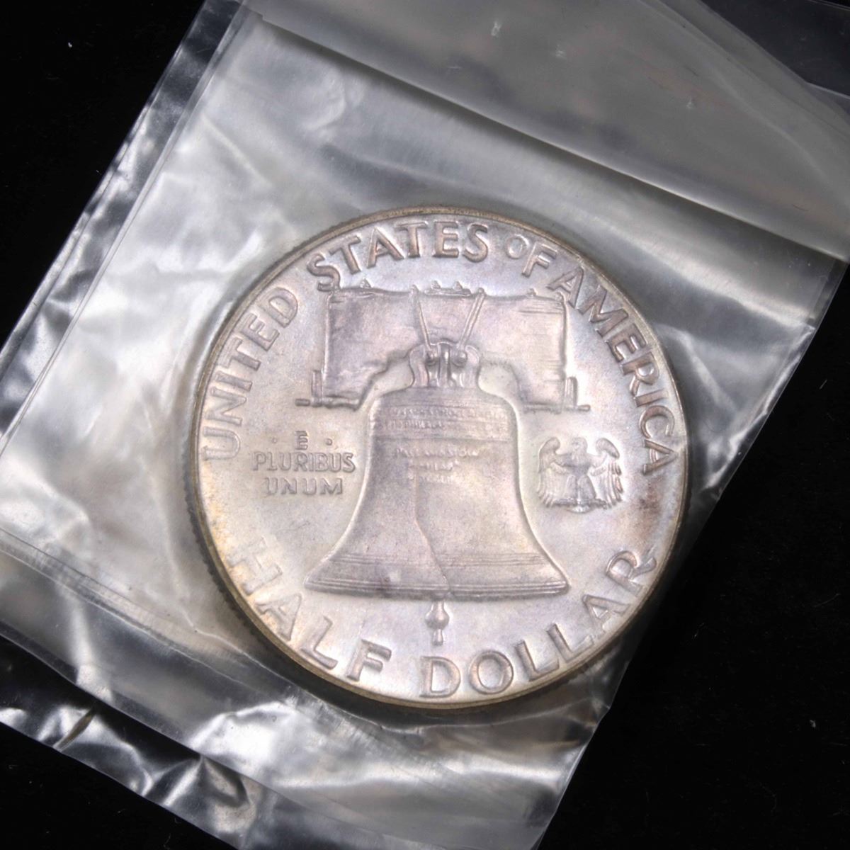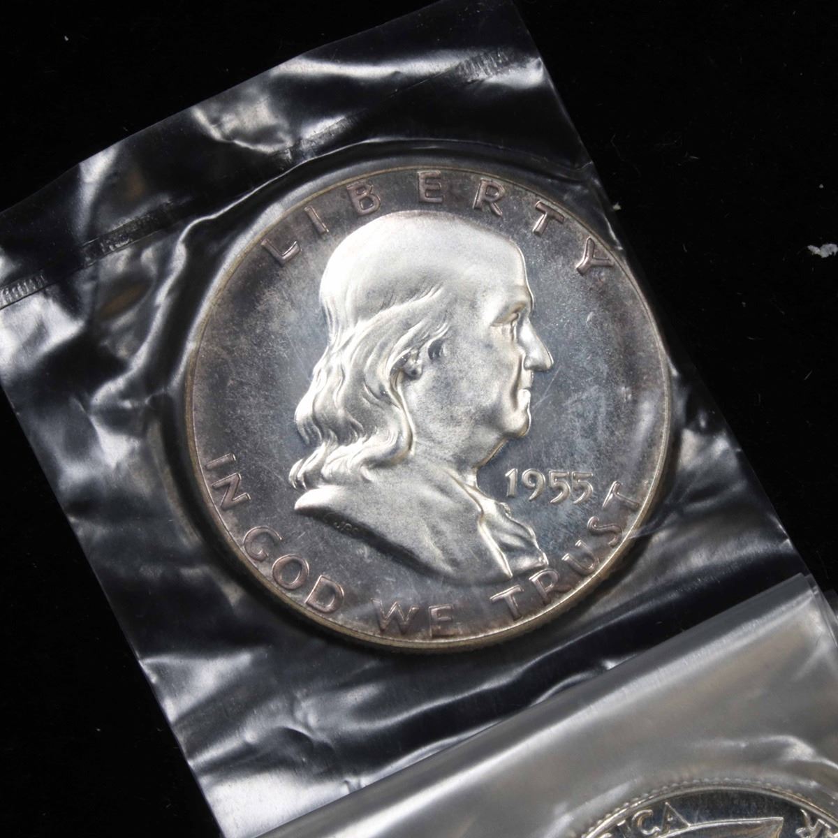 ES. This proof set is in the original mint packaging with the original box. This set contains a proof Silver Franklin half, a Proof Silver Washington quarter, the proof Silver Roosevelt dime + the proof nickel and the proof penny. All coins in the original packaging.