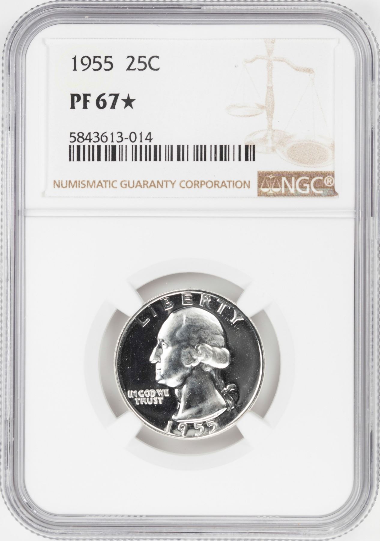 One 1955 Proof Washington Quarter Coin NGC PF67* Star.