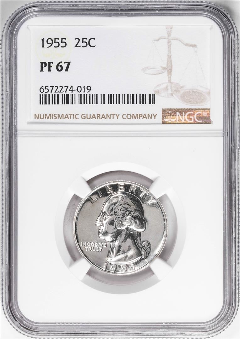 One 1955 Proof Washington Quarter Coin NGC PF67. NGC Certified.