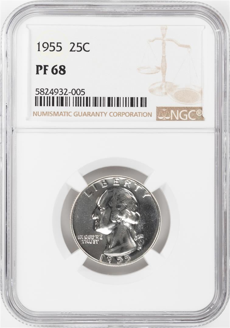 One 1955 Proof Washington Quarter Coin NGC PF68. NGC Certified.