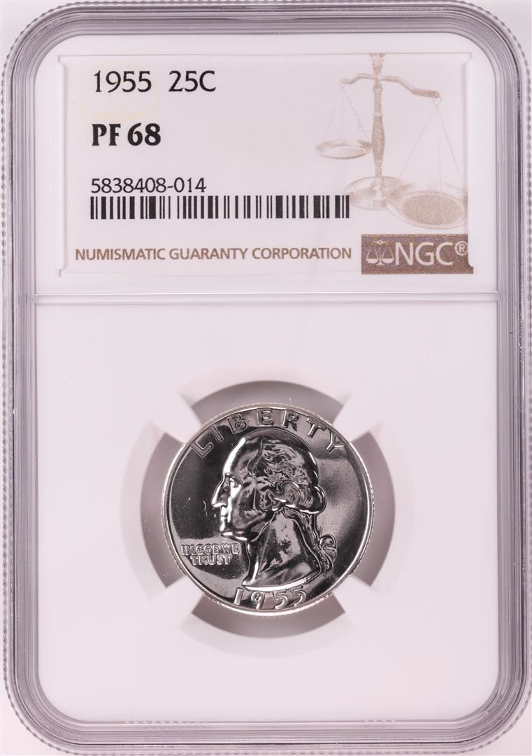One 1955 Proof Washington Quarter Coin NGC PF68. NGC Certified.