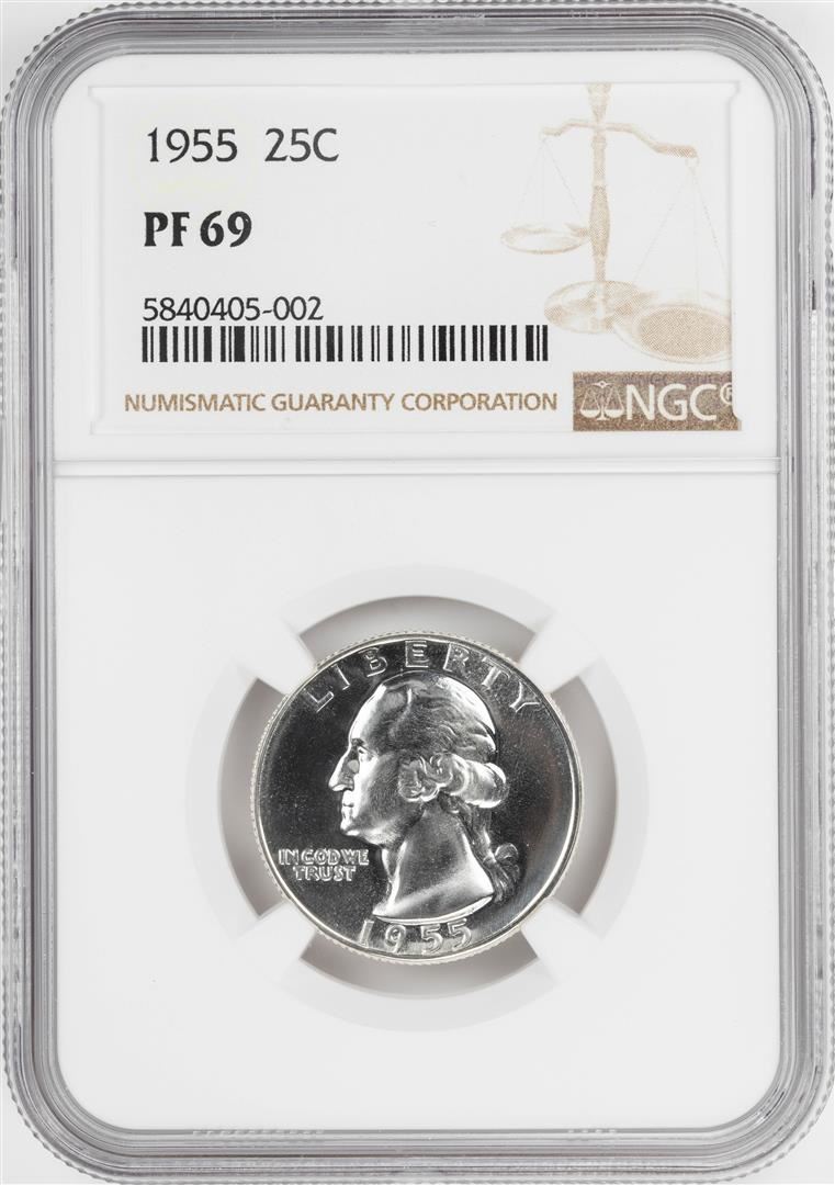One 1955 Proof Washington Quarter Coin NGC PF69. NGC Certified.