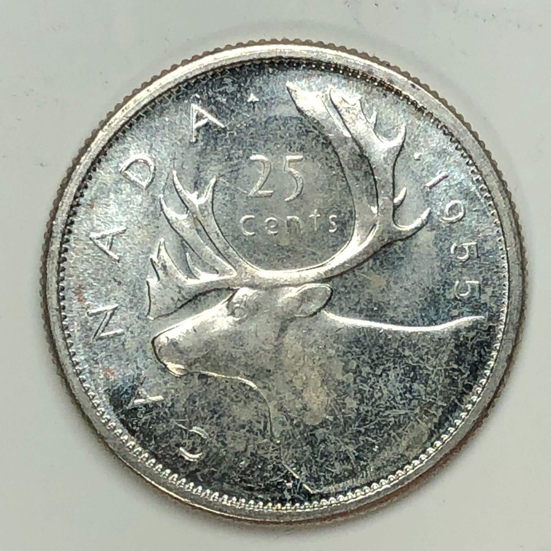 1955 Queen Elizabeth 25 Cents Choice UNC Blast White