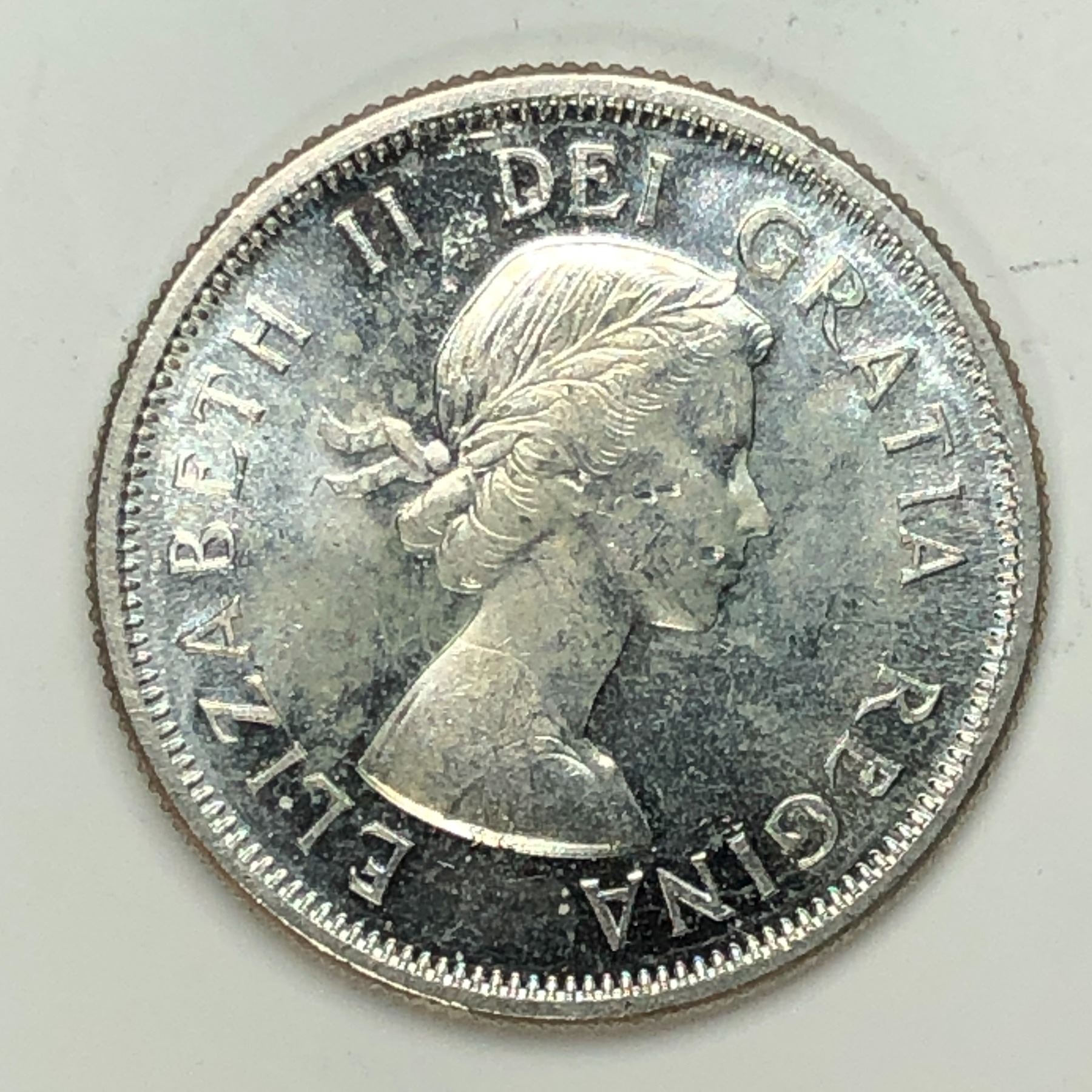 1955 Queen Elizabeth 25 Cents Choice UNC Blast White