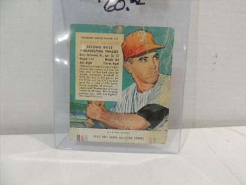 1955 RED MAN #15 BASEBALL CARD GRANNY HAMNER. VERTICLE CREASE FADED. AS SHOWN. VIEW PICTURE FOR DETAIL.