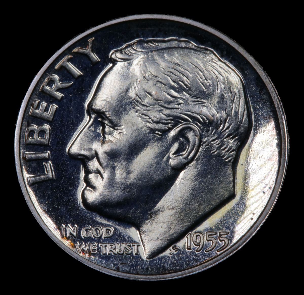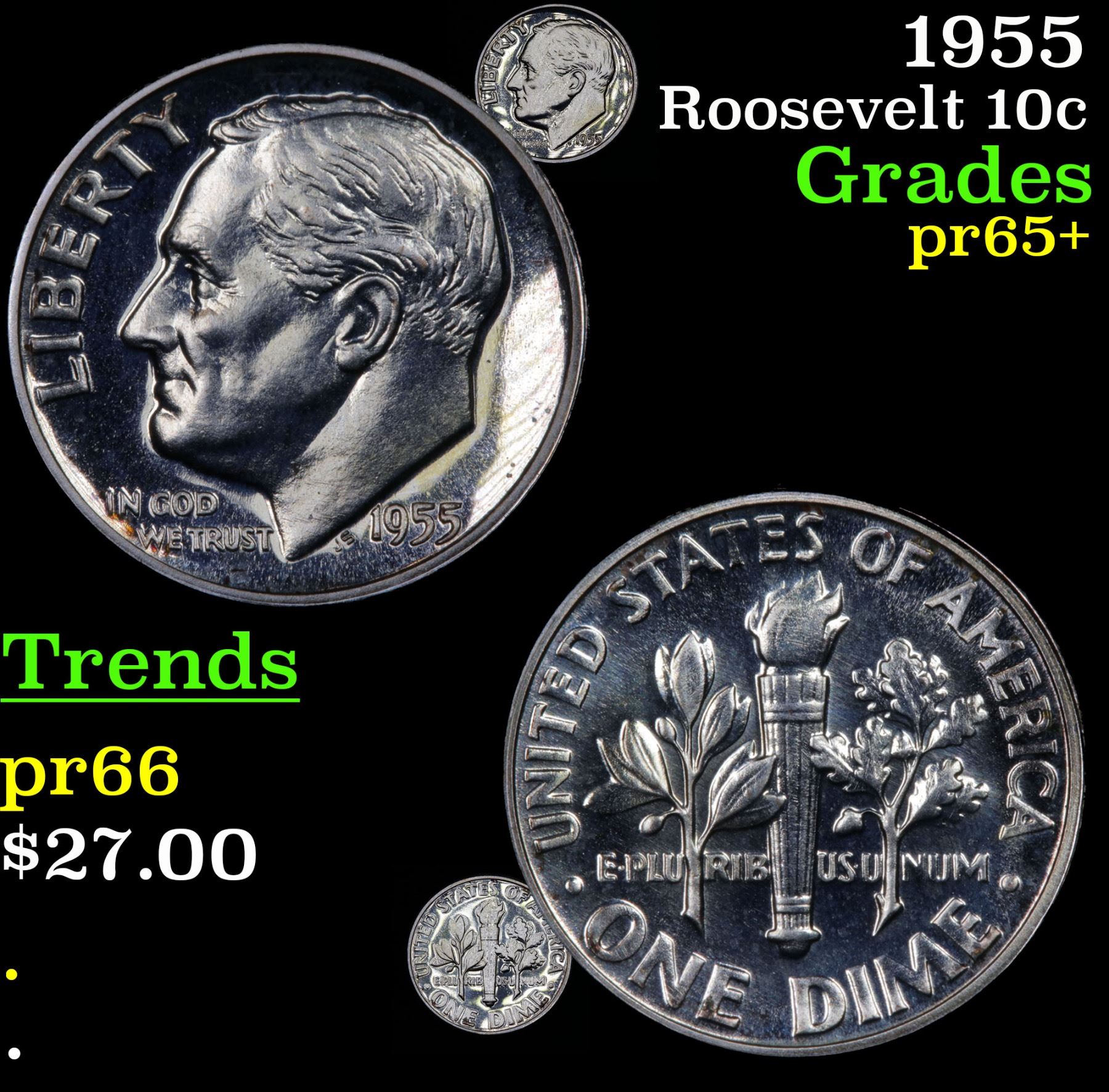 1955 Roosevelt Dime 10c Grades GEM+ Proof.