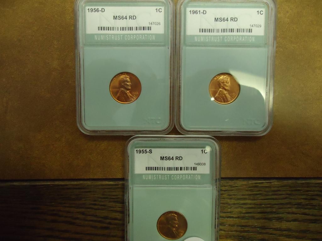 1955-S,56-D & 61-D LINCOLN CENTS ALL NTC MS64RD