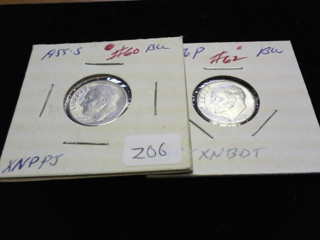 1955-S & 56-P ROOSEVELT DIMES (UNC)