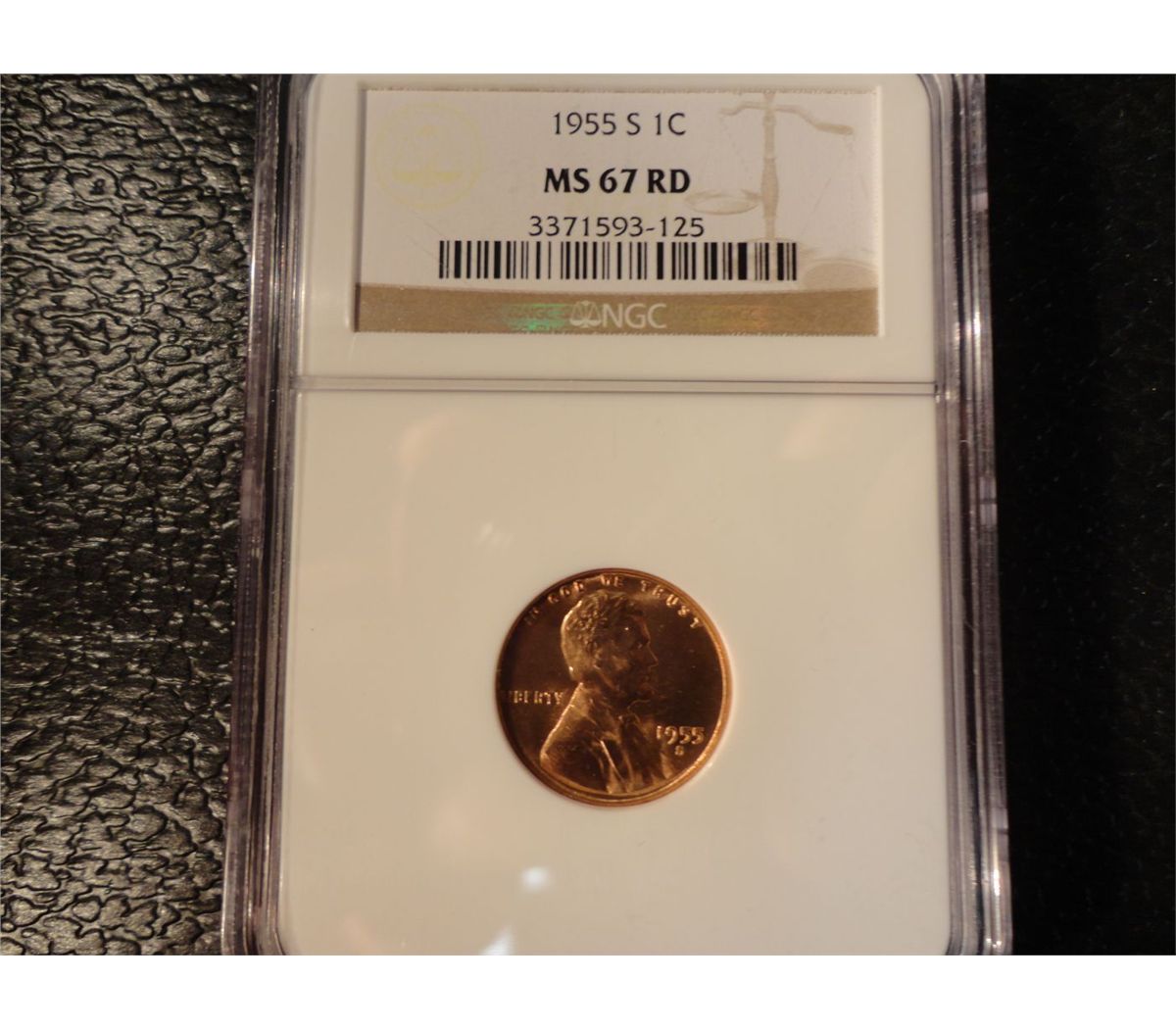 1955-S LINCOLN CENT GRADED MS67-RD BY NGC