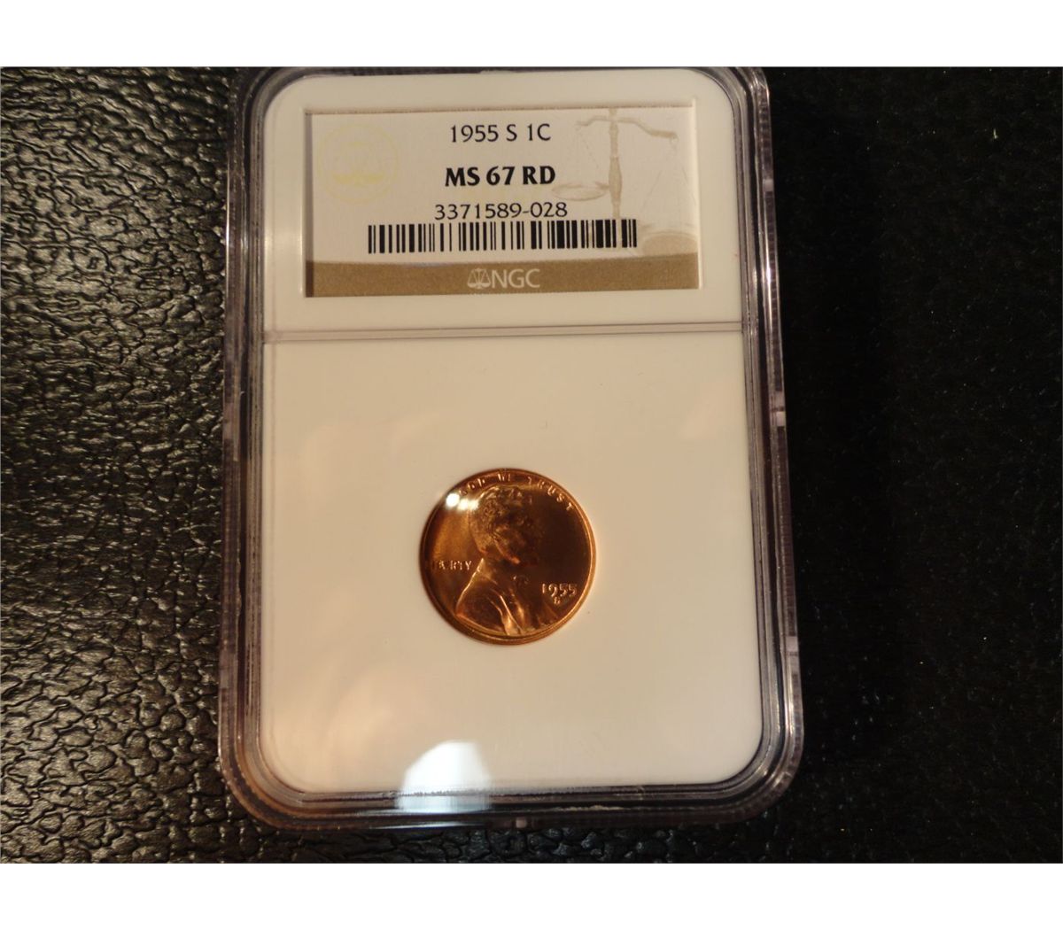 1955-S LINCOLN CENT NGC MS 67 RD