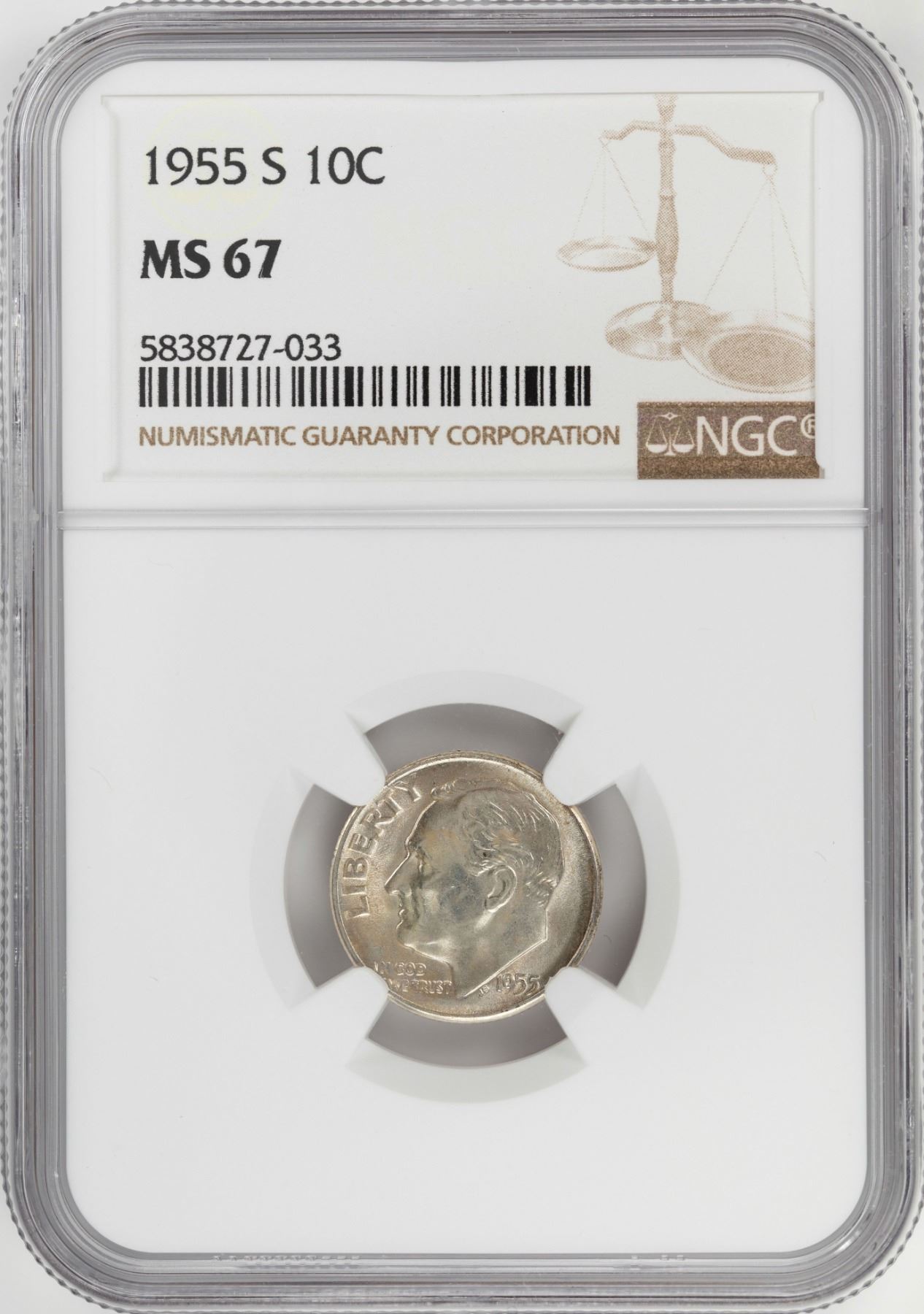 One 1955-S Roosevelt Dime Coin NGC MS67.