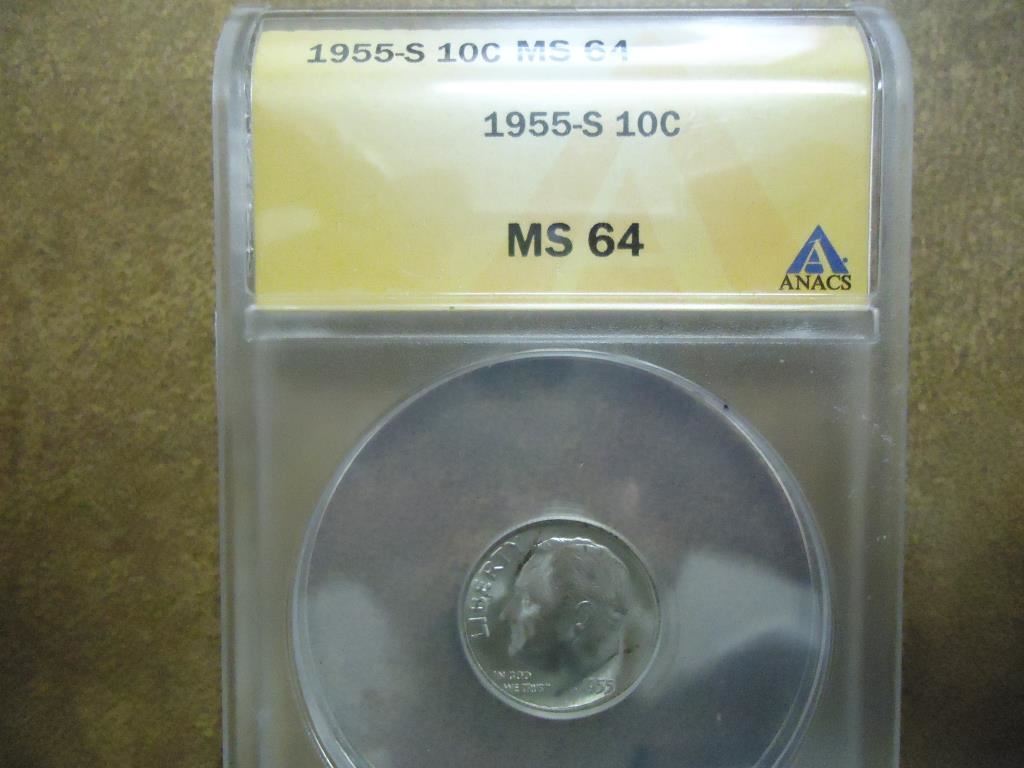 1955-S SILVER ROOSEVELT DIME ANACS MS64