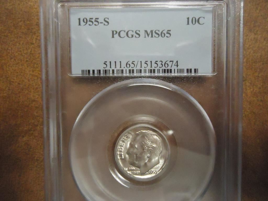 1955-S SILVER ROOSEVELT DIME PCGS MS65