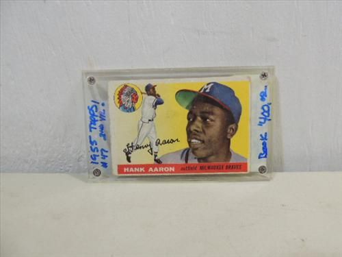 1955 TOPPS #47 BASEBALL PLAYER CARD HANK AARON. AS SHOWN. VIEW PICTURE FOR DETAIL.