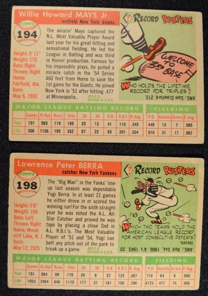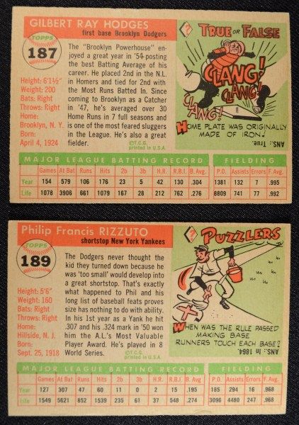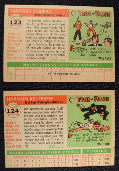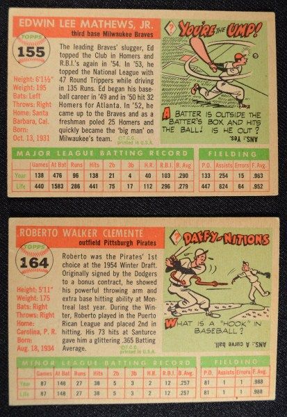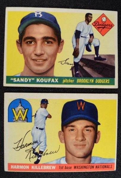 #2 Williams VG, #4 Kaline VG, #28 Banks VG, #31 Spahn VGEX #47 Aaron EX, #50 J Robinson VG, #123 Koufax (R) VGEX, #124 Killebrew (r) EX, #155 Mathews EX, #164 Clemente (r) Good, #187 Hodges EX, #189 Rizzuto EX, #194 Mays VGEX, #198 Berra VG, #210 Snider EX Overall Nice EX to VGEX+ Book Value $8000-$10,000