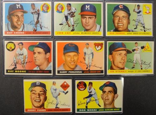 Includes #25 Podres, 65 Boone, 85 Mossi (R), 110 Zernial, 149 Crone, 134 Jay, 184 Perkowski, 191 Stanky. Nice EX+ - EM. Great Color & Gloss. Clean Front & Back. Book $256.00. Est. Value $150.00 - $170.00.