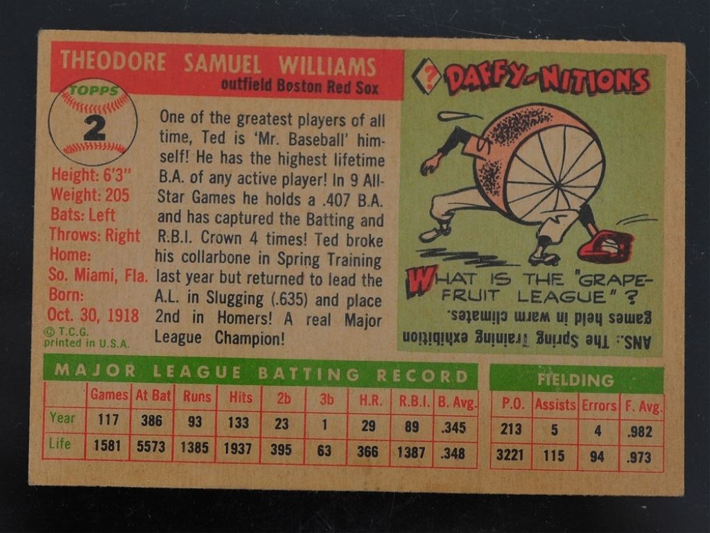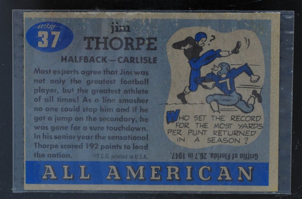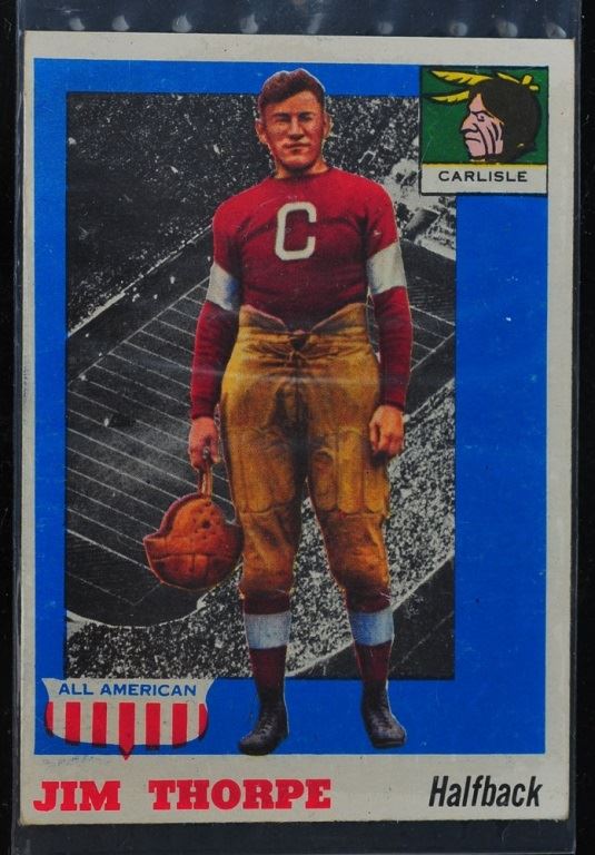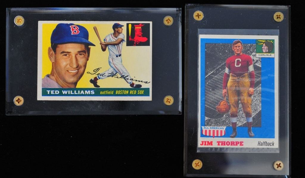 CONDITION REPORT: Ted Williams near mint with 70/30 o/c and tiny nudges to upper corners; Jim Thorpe is excellent+, off center, slight corner wear at bottom and light spotting to back