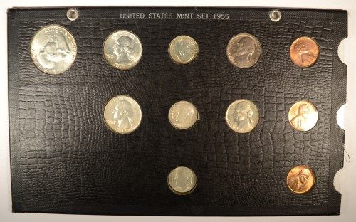 1955 U.S. MINT SET MS-65 COINS, 11 PIECE IN OLD RAYMOND BOARD