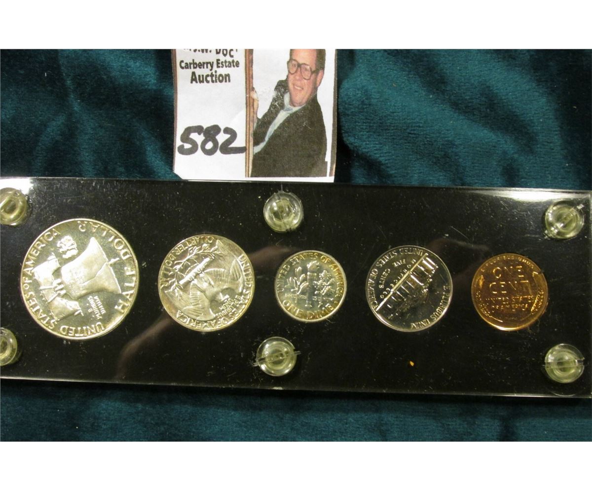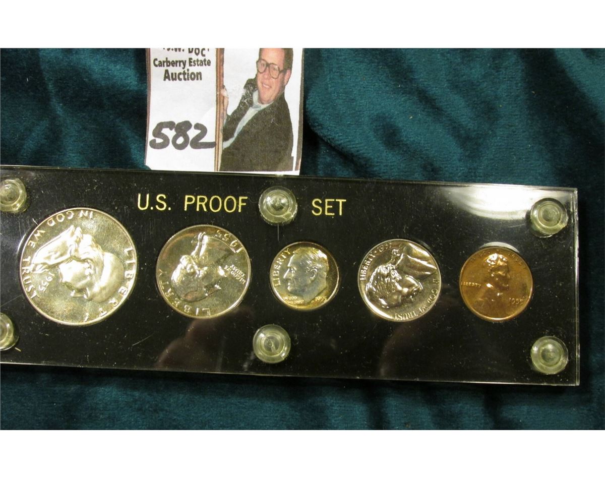 1955 U.S. Proof Set Cent to Half-dollar in black Capital holder with gold lettering.