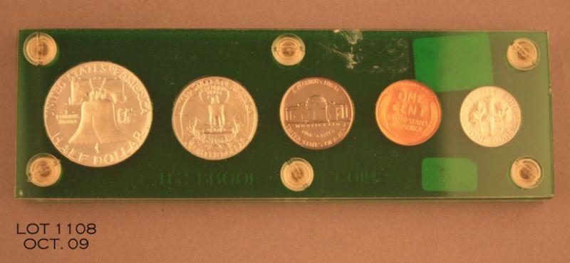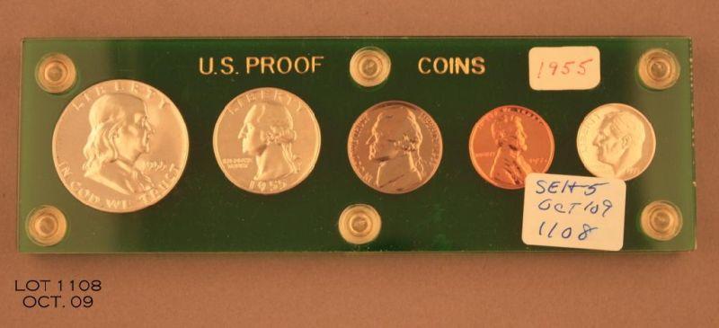 1955 US proof set featuring Franklin half - all circulated MS64-66, not professionally graded. Est. $75 - $150
