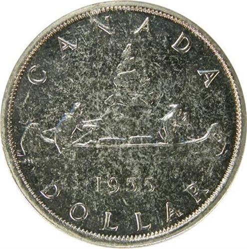 Canada Silver Dollar 1955 Very Choice Cameo Proof-Like. Untoned, or nearly so