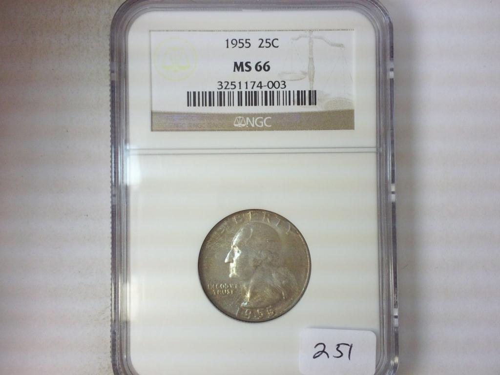 1955 WASHINGTON SILVER QUARTER NGC MS66 TONED