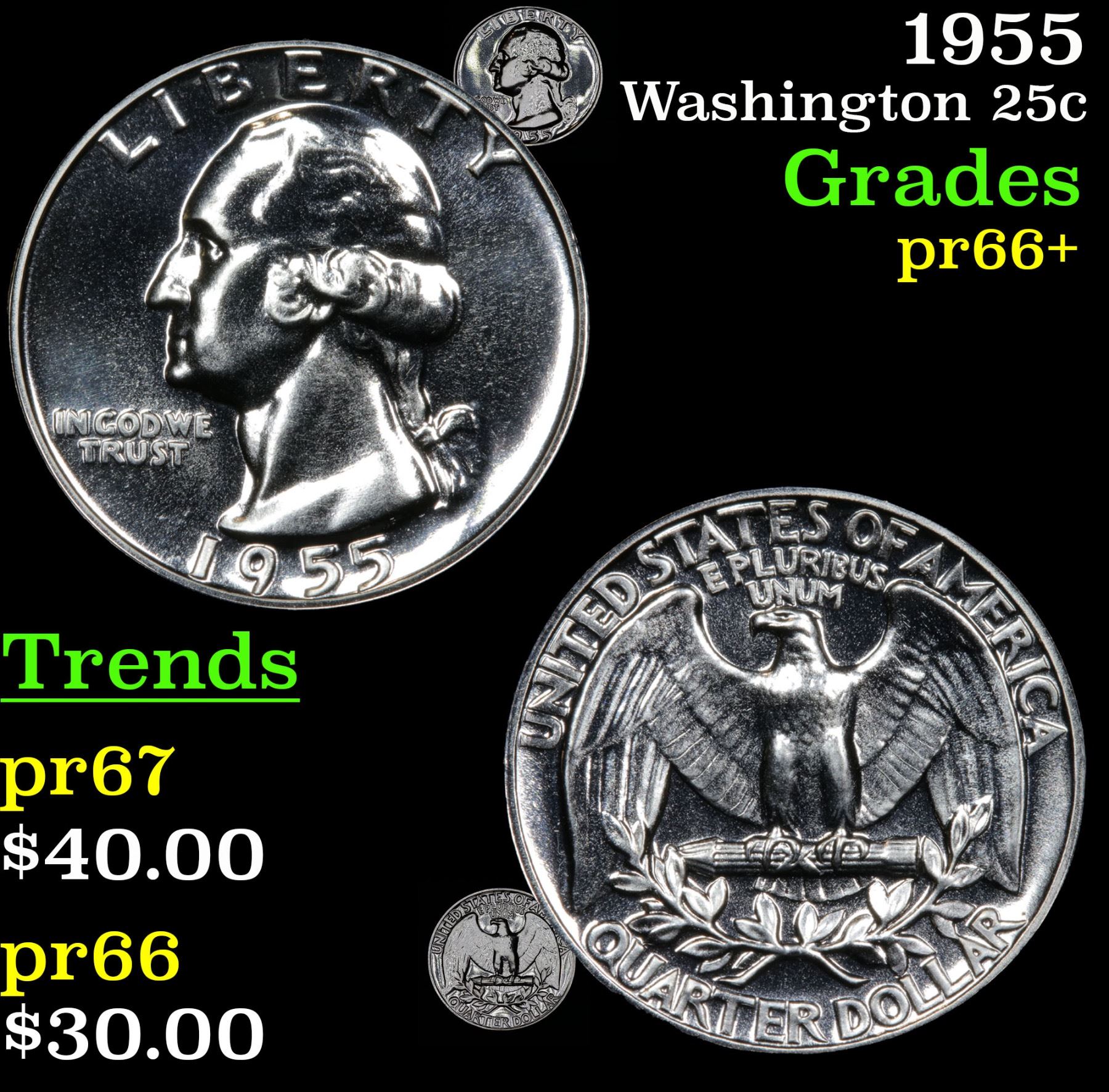 1955 Washington Quarter 25c Grades GEM++ Proof.