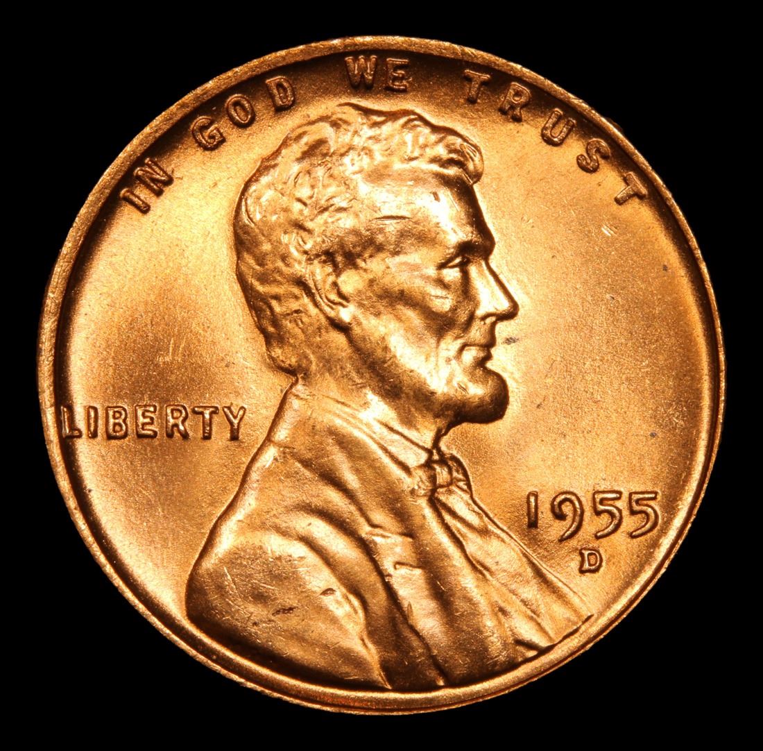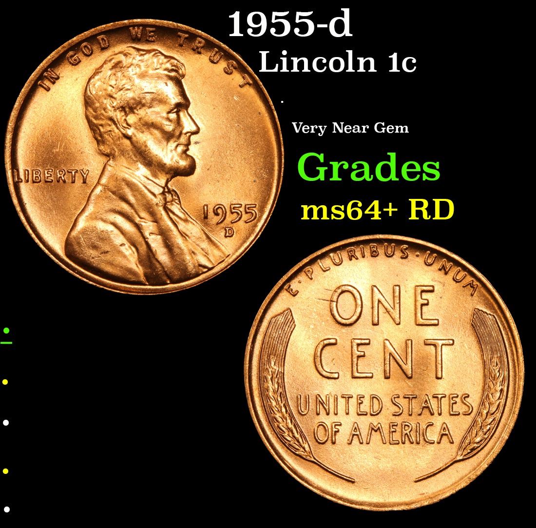 1955-d . Very Near Gem Lincoln Cent 1c Grades Choice+ Unc RD.