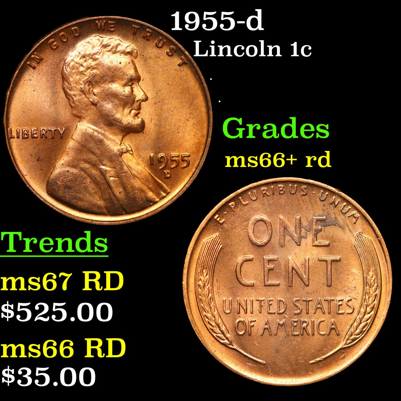 1955-d Lincoln Cent 1c Grades GEM++ RD.