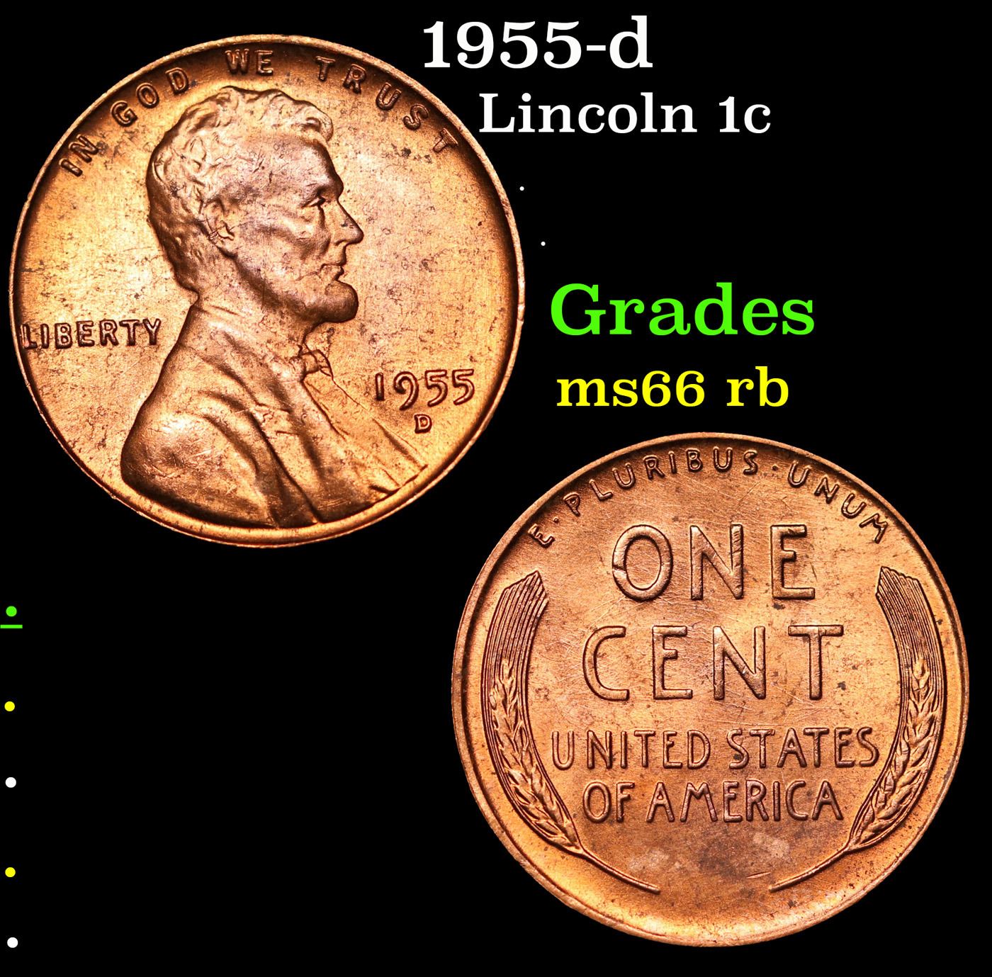 1955-d Lincoln Cent 1c Grades GEM+ Unc RB.