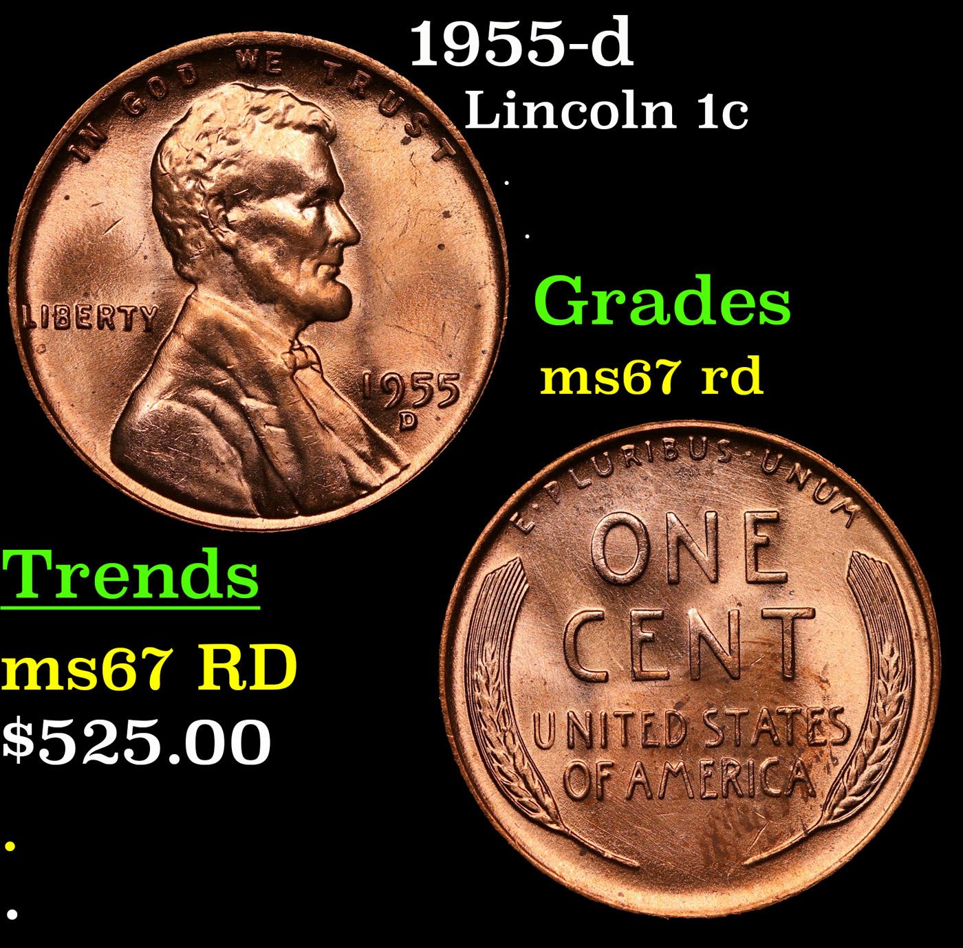 1955-d Lincoln Cent 1c Grades GEM++ Unc RD.