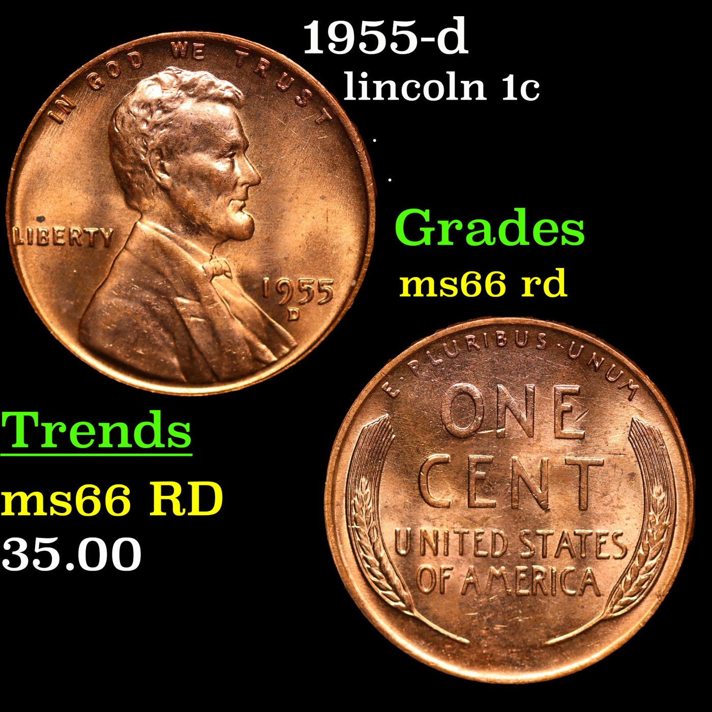 1955-d Lincoln Cent 1c Grades GEM+ Unc RD.
