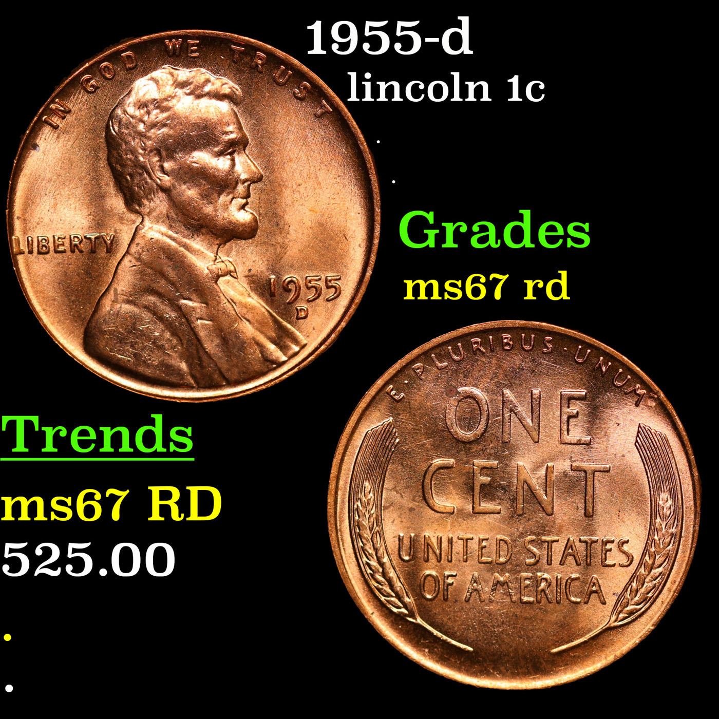 1955-d Lincoln Cent 1c Grades GEM++ Unc RD.