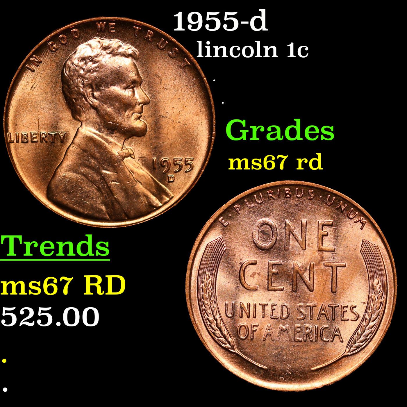 1955-d Lincoln Cent 1c Grades GEM++ Unc RD.