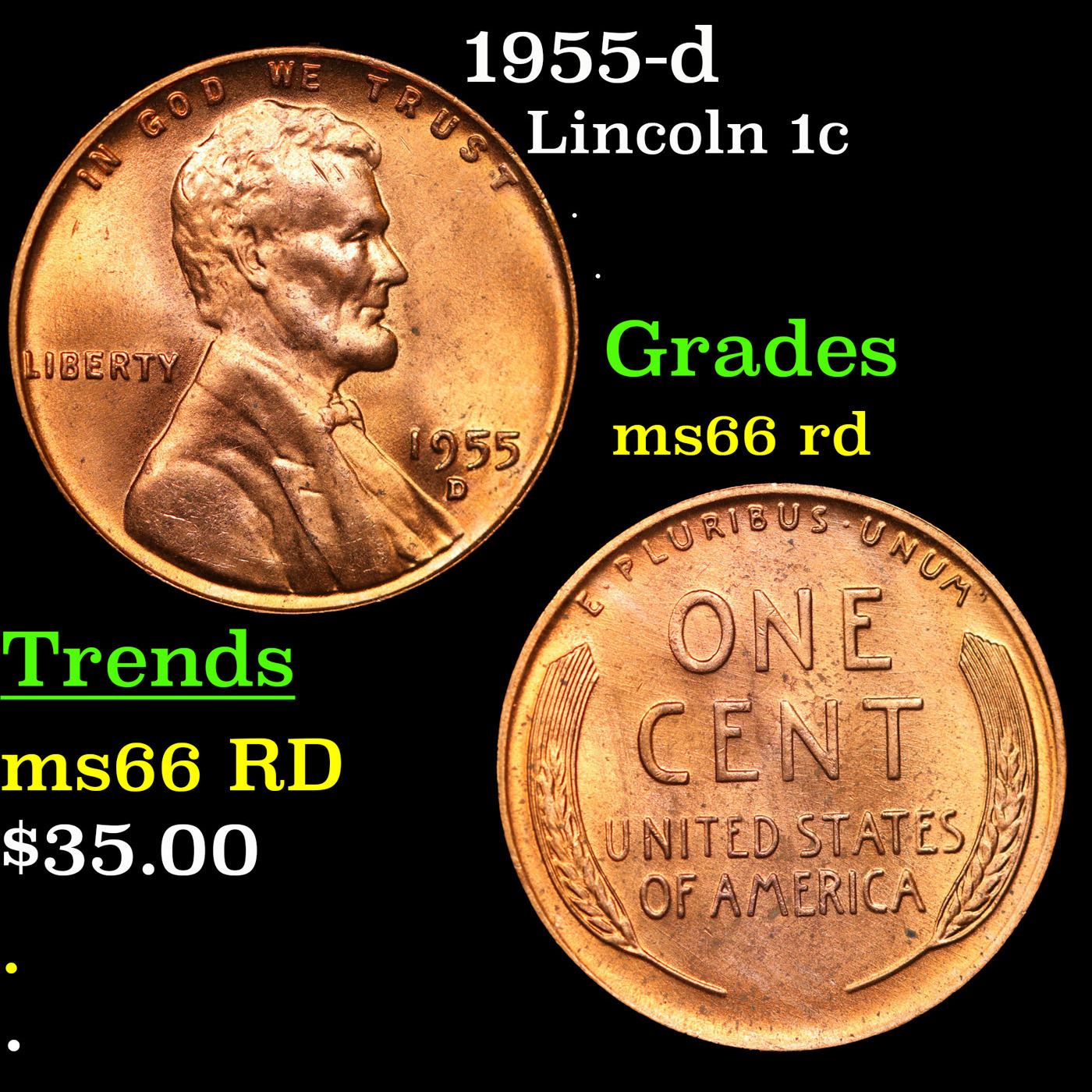 1955-d Lincoln Cent 1c Grades GEM+ Unc RD.