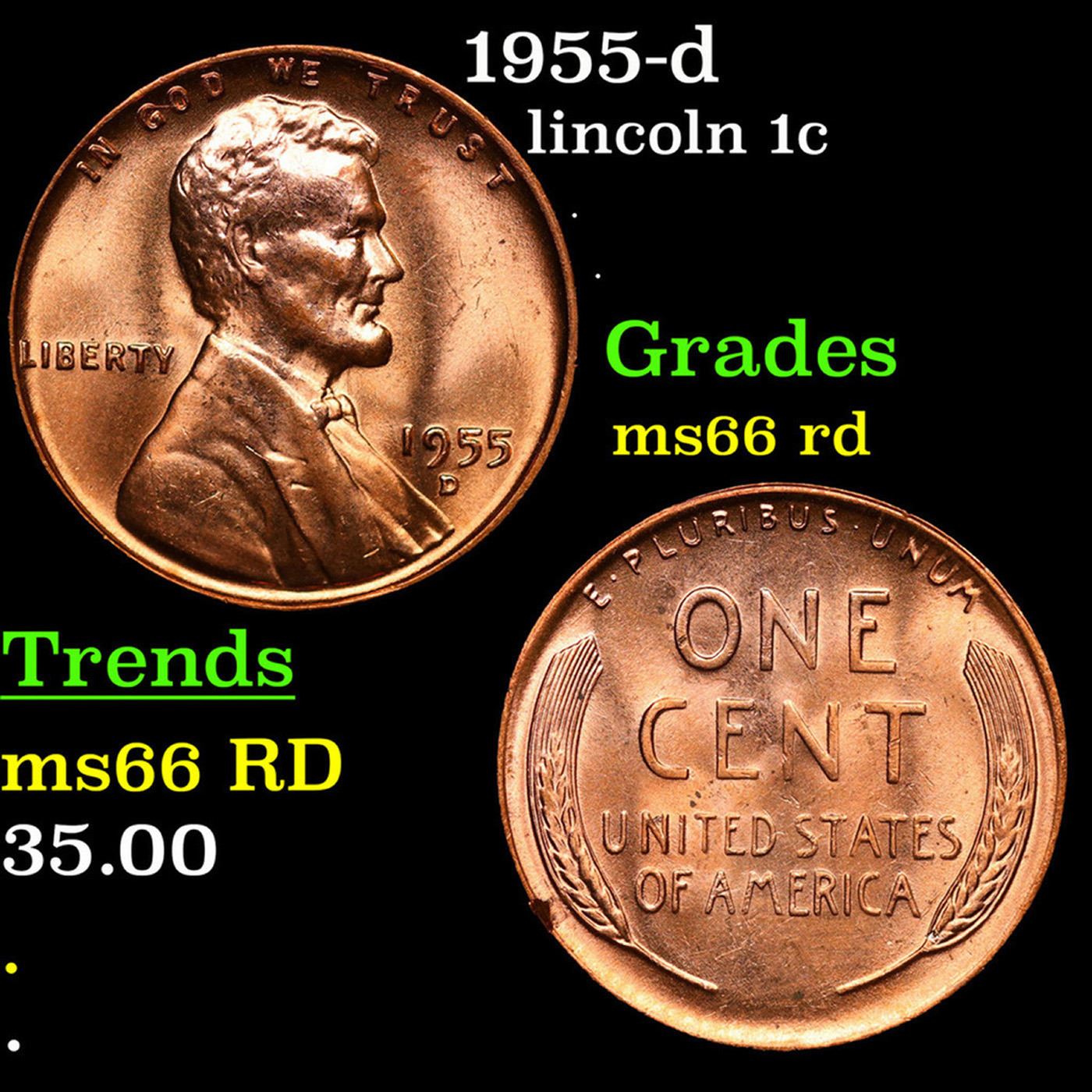 1955-d Lincoln Cent 1c Grades GEM+ Unc RD.