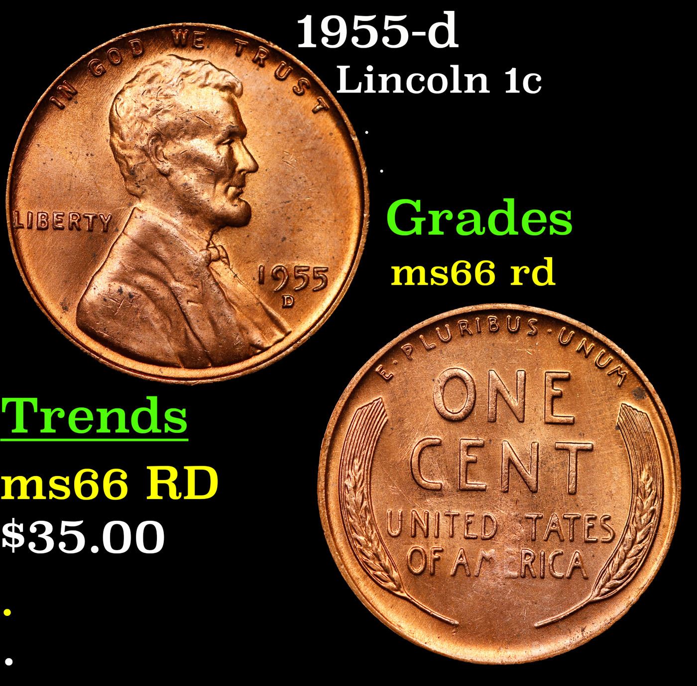 1955-d Lincoln Cent 1c Grades GEM+ Unc RD.