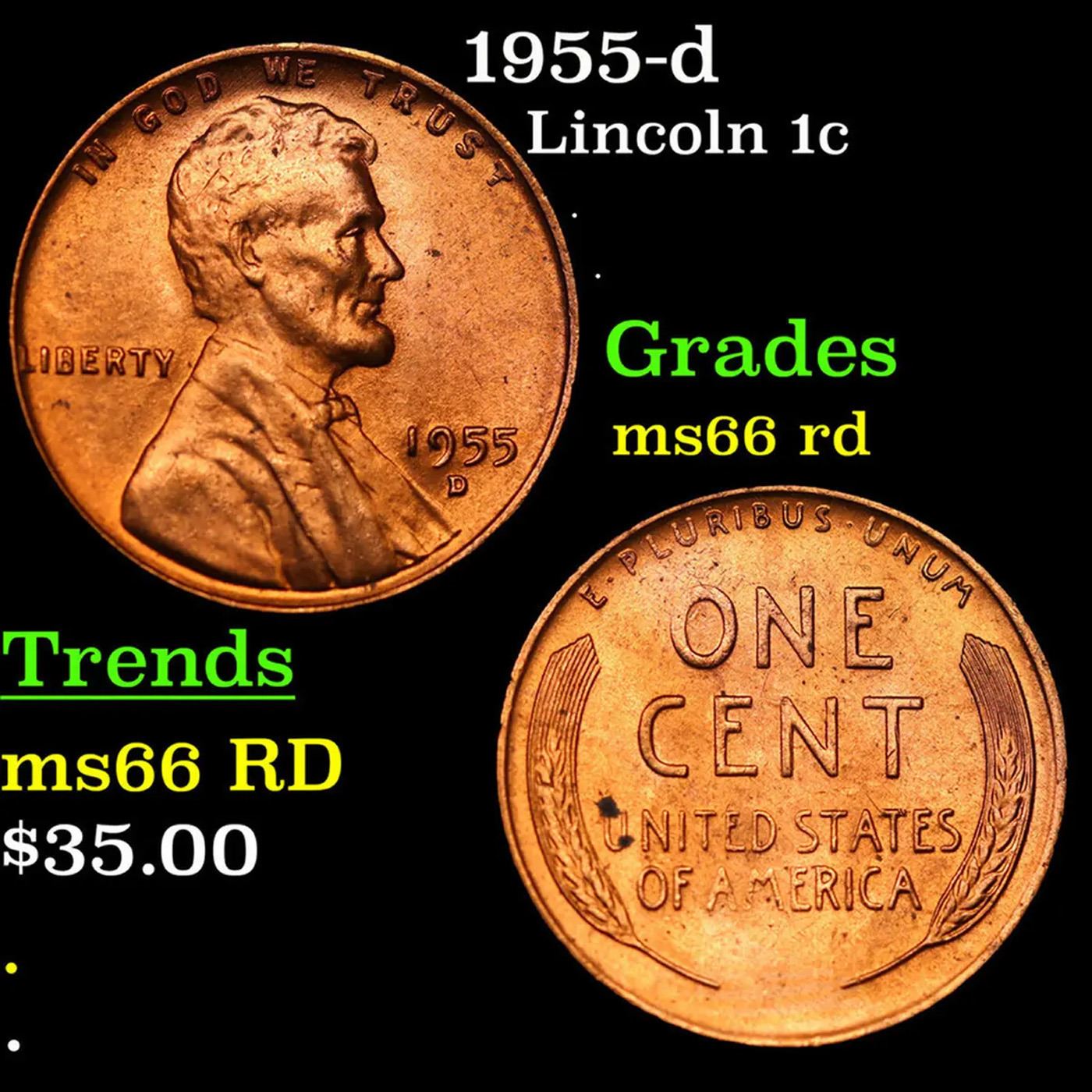 1955-d Lincoln Cent 1c Grades GEM+ Unc RD.