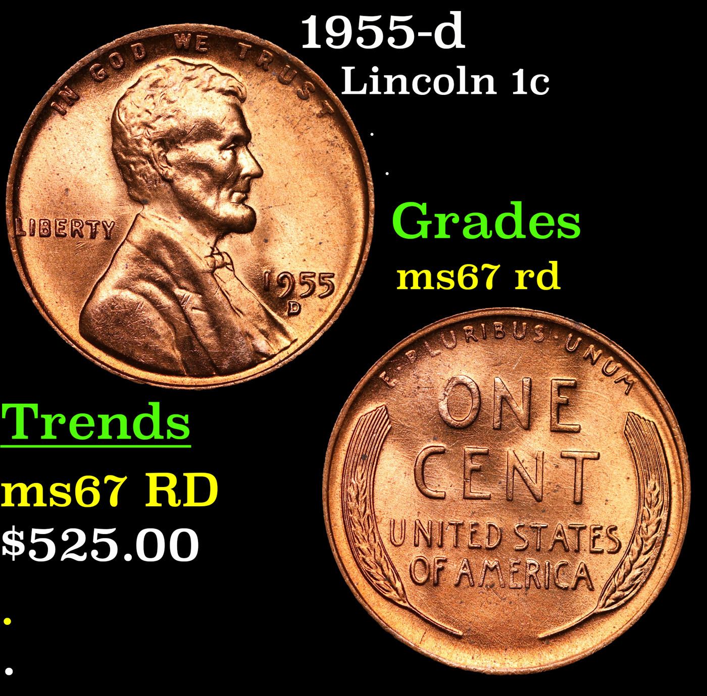 1955-d Lincoln Cent 1c Grades GEM++ Unc RD.