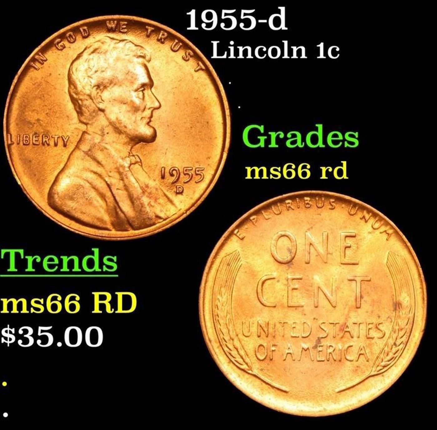 1955-d Lincoln Cent 1c Grades GEM+ Unc RD.