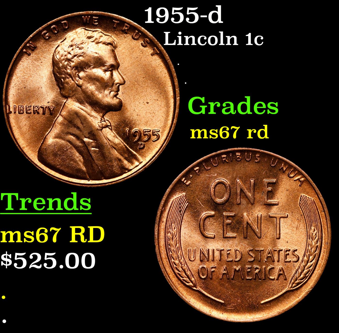1955-d Lincoln Cent 1c Grades GEM++ Unc RD.
