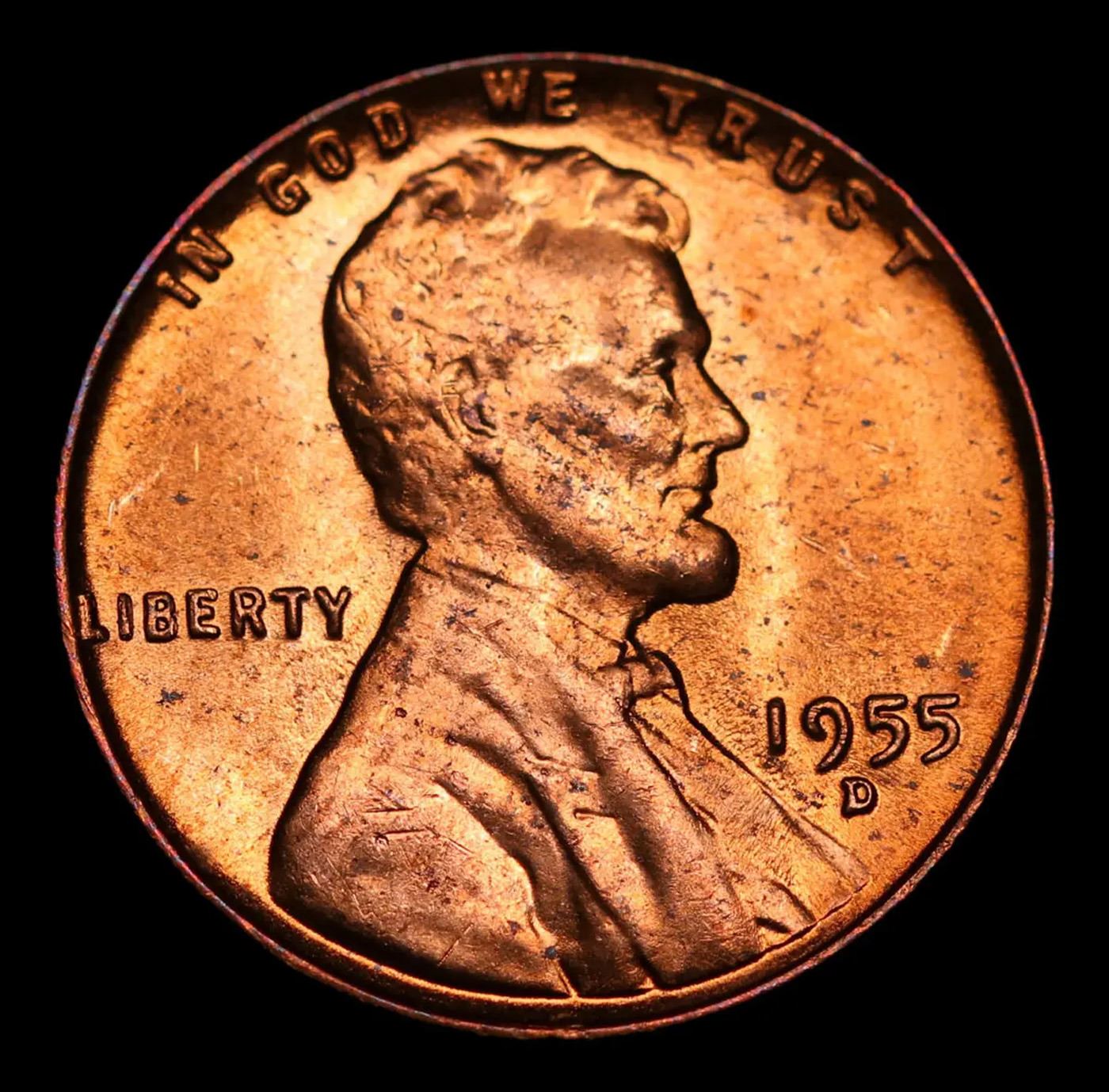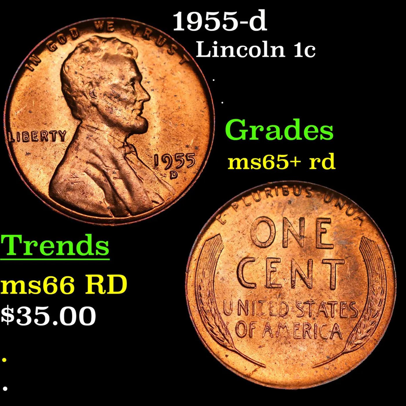 1955-d Lincoln Cent 1c Grades Gem+ Unc RD.