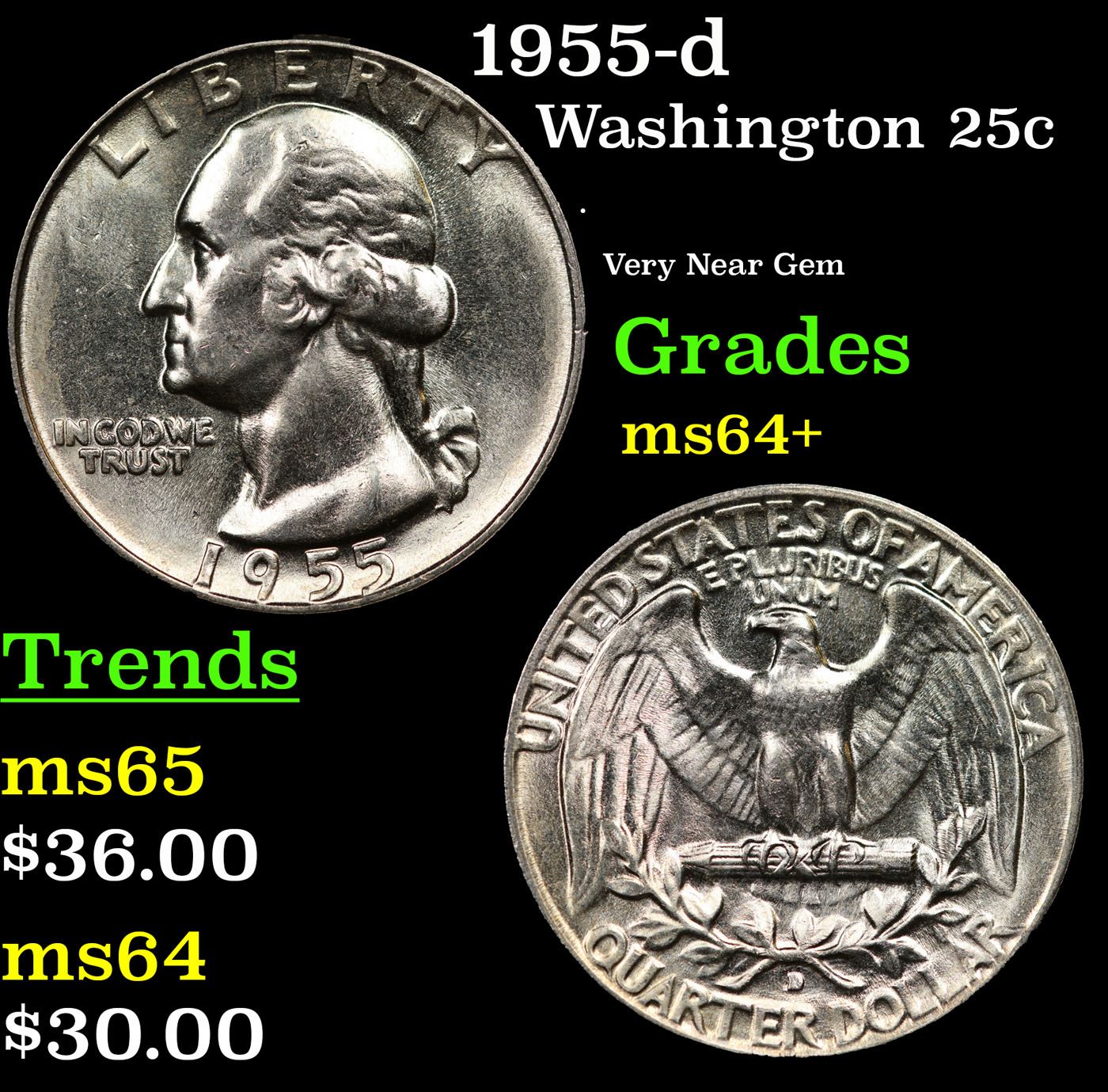1955-d Washington Quarter 25c Grades Choice+ Unc.