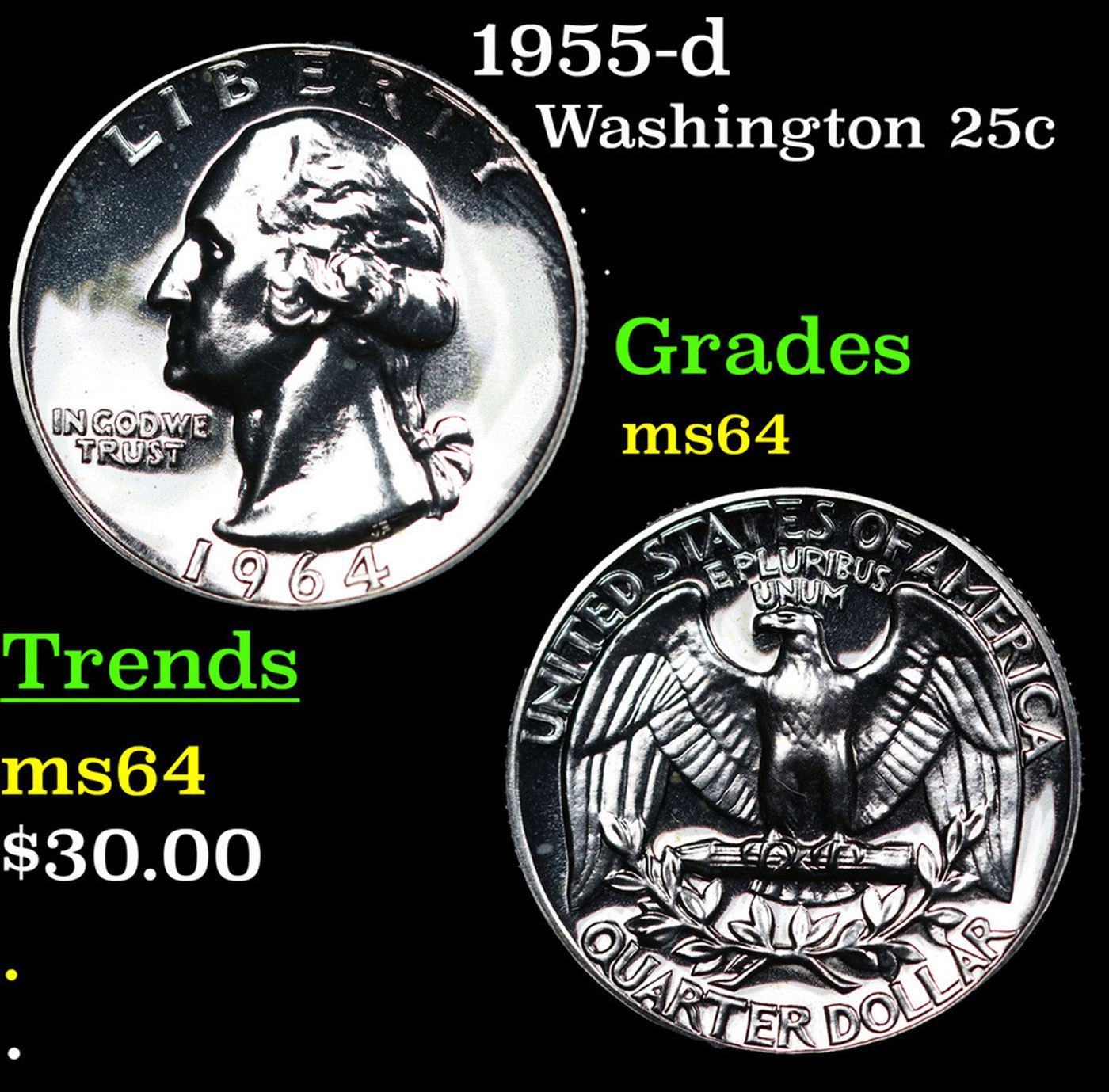 1955-d Washington Quarter 25c Grades Choice Unc.