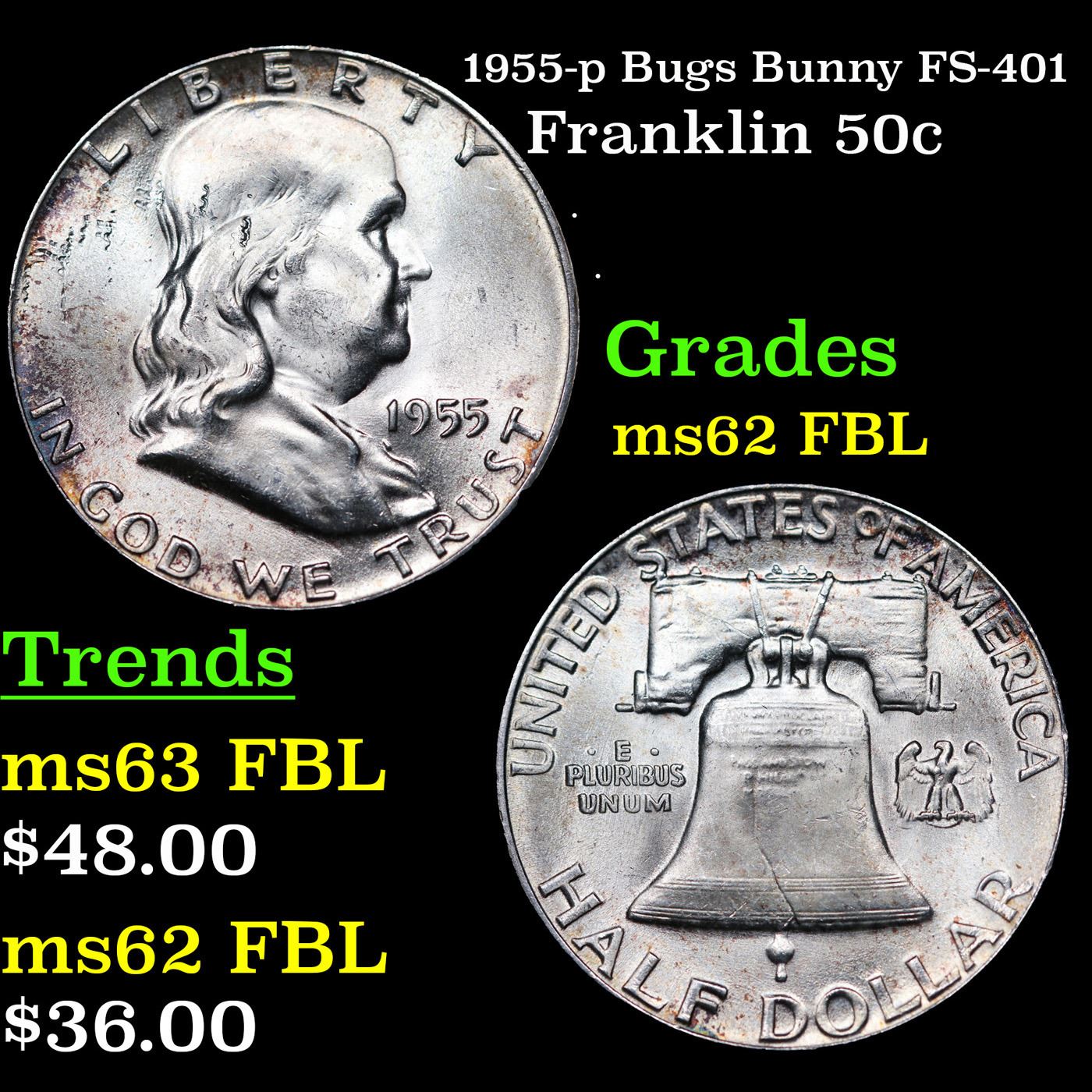 1955-p Bugs Bunny FS-401 Franklin Half Dollar 50c Grades Select Unc FBL.